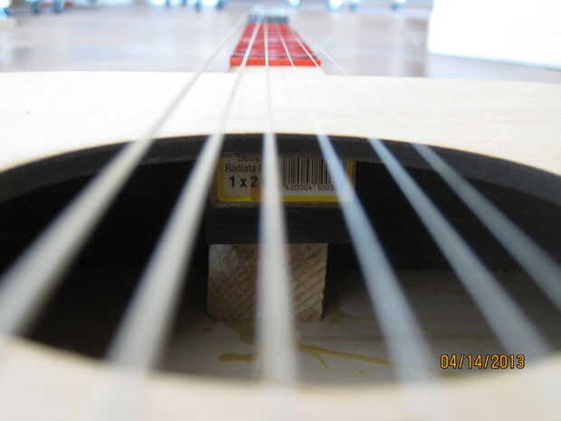 ¿Qué haces?-hice una guitarra casera. El cuerpo es de madera apilada y reforzado con varillas de roble. El cuerpo amplifica el sonido de la cuerda vibrante. El cuello es de 1 X 2 y pegado dentro del cuerpo de la guitarra. Las clavijas de afinación se hacen de los tornillos de ojo. Los tornillos de ojos permiten la tensión de la cuerda para ajustar y cambiar así el tono. La tuerca y el puente están hechos de madera y crean una onda. Cuando arrancó, la cuerda vibra entre estos dos puntos, creando sonido. El puente también ayuda a enviar las vibraciones en el cuerpo de la guitarra para ser amplificados. Los trastes están hechos de acrílico negro y rojo. Los trastes son medidos medida señala que al pulsar sobre, acortar la cuerda y tocar una nota más alta cuando arrancó. Hice esta guitarra con un cortador láser, un taladro, una sierra de banda, lijadora y archivos cómo la hiciste?-me vino la idea para este proyecto después de haber colocado 2 º en el torneo regional de la Olimpíada de Ciencias. Entonces teníamos una guitarra mucho más simple y quería una guitarra mejor aspecto para el torneo estatal. Trabajé con mi pareja en el caso de la Olimpíada de Ciencias. Cuando fui a lo largo, que intentaba averiguar cómo asegurar las cuerdas al puente sin usar pernos, como se ve en las modernas guitarras acústicas. Investigué por mirar fotos en línea hasta que me inspiré con el diseño actual. Donde la hiciste?-he trabajado en la guitarra en mi casa y después de la escuela en clase de mi profesor de taller. Este proyecto se conecta a mi evento de Olimpiada de ciencia, sonidos de la música, donde tienes que construir dos instrumentos musicales caseros. Qué aprendiste?-He aprendido muchísimo sobre la teoría del sonido y la música de este proyecto. Nunca he tocado un instrumento antes y aprendió a escribir música, la física de ondas, y como sonido es transmitido y recibido en el oído. A lo largo de la construcción, me preocupaba si el cuello para el cuerpo sería lo suficientemente fuerte como para apoyar el cuello. Me sorprendió cómo la parte superior de la guitarra era capaz de soportar la tensión sobre la articulación muy fácilmente. Yo también estaba preocupada por cómo colocar los trastes. Pero después de algunas investigaciones, encontré muchas calculadoras para encontrar la distancia entre trastes. También luché con cómo asegurar las cuerdas al puente. Pero una vez más, la investigación en internet la respuesta a mis problemas. Me siento orgulloso de todo el proyecto, creo que es uno de mis mejores trabajos. Pero me siento especialmente orgulloso de la forma del cuello y lo suave es. También estoy orgulloso del diseño del puente y lo bien que funciona. Si tuviera que hacer este proyecto nuevo, haría que el cuello un poco más amplio. En la actualidad en 1 1/2", es un poco demasiado delgada para mi gusto. Yo prefiero tenerlo 2" de ancho. Quiero terminar la madera con una mancha agradable para darle más estética. En general, creo que la guitarra parece bastante bueno.