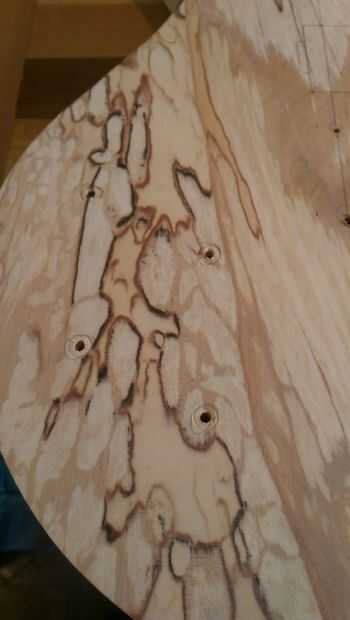 Como utilicé otra guitarra, transferí todas las marcas y posiciones del antiguo cuerpo de basura negro a mi nuevo cuerpo de Spalted ceniza.