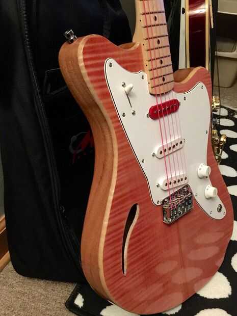 Este instructable le mostrará cómo construir un perno en cuello, guitarra eléctrica semi-hollowbody, en la forma de las guitarras de Fender Thinline y similares. El cuerpo es similar a una Jazzmaster o Jaguar, con una tapa plana, pero los pasos serían los mismos para cualquier forma del cuerpo y para cuerpos de tapa tallada. Usando el mismo hardware de maderas y similar como obtendrá una guitarra que pesa total ~ 7 libras (mi cuello es un arce de 1 pieza, por lo que es un poco más pesado que una madera de caoba cuello; el cuerpo sí mismo derecho pesa 4 libras). La mirada--caoba natural, ligeramente teñido de enlace superior, natural, fue inspirado por la Les Paul en las fotos.