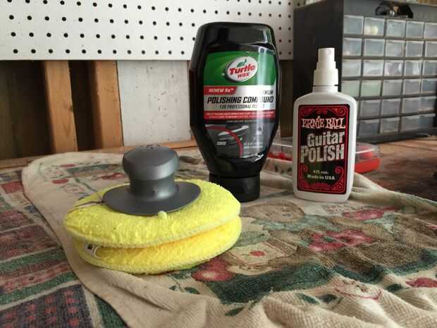 • Aplique el pulimento de la guitarra y pula con un aplicador de cera limpia
