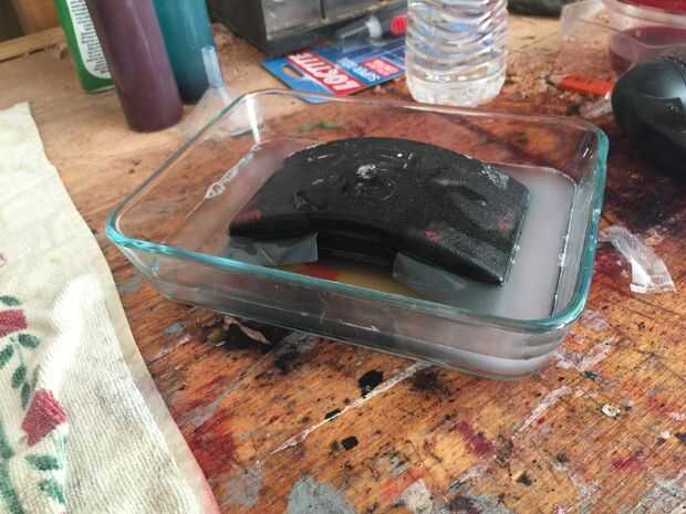 2. Colocar un trozo de papel de lija de grano 1000 en un bloque de lijado y déjelo remojar mientras haces el siguiente paso