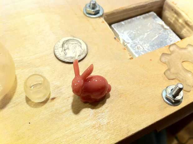 Algo a tener en cuenta es el costo actual de resinas UV/Visible comercialmente disponibles. 1 litro es de $200 - $250 tan comparada con ABS o PLA para las impresoras de extrusión de plástico que se trata de 4 - 5 veces más lo que puedo decir. Hay otros tipos de resina que son más baratos pero no sé qué tan bien funcionan.
