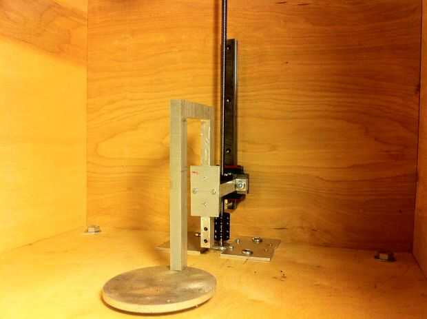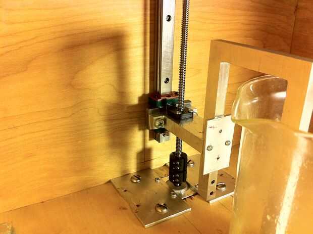 En la pieza inferior de la caja utilice una sierra de calar para cortar el agujero para el paso a paso del eje Z.