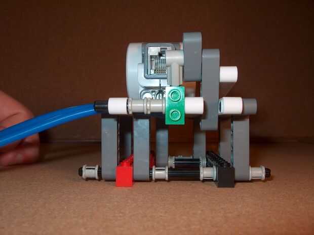 Luego coloque el Lego neumática tubería a algunos tubos de Lego para que coincida con algún tubo de acuario y la extrusión de la tubería. Si no cabe el tubo del acuario envuelve una banda elástica alrededor de él.
