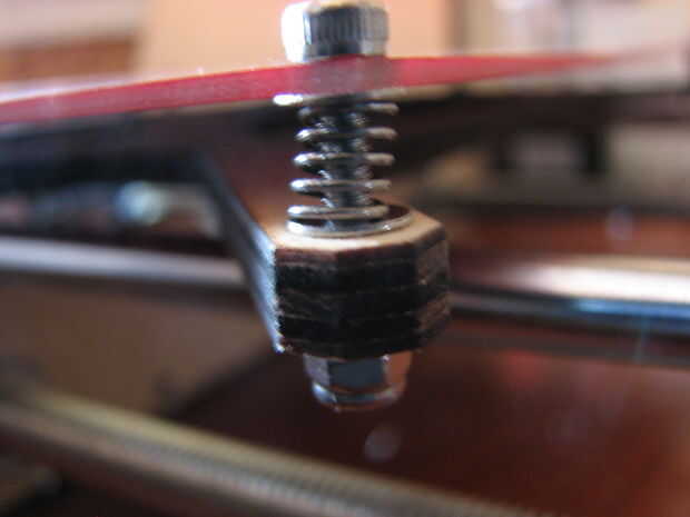 Al marco con tornillos M3 cama de calor y utiliza resortes con arandelas para nivelar la cama si es necesario.