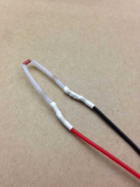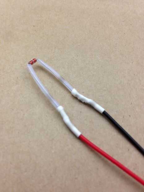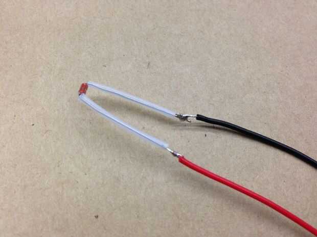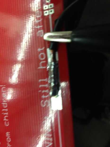 Es la temperatura de la cama es leído por las rampas de Arduino por un termistor (generalmente 100k). Hemos utilizado un par de cables desde el kit de cables que compramos de eBay. El termistor a los cables de la soldadura y cubra las uniones con termorretráctiles.