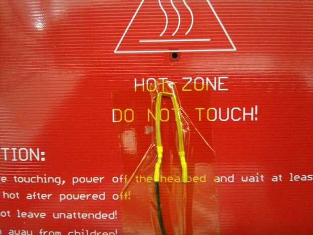 El termistor se une a la parte inferior de la cama con la cinta "kapton". Ver la imagen adjunta.