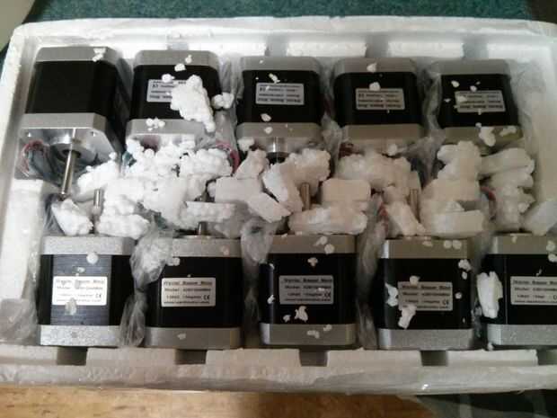 Motores paso a paso - necesita 5 motores NEMA 17. La NEMA 17 es un motor paso a paso con un 1,7" x1.7" placa frontal. El wiki de RepRap tiene un poco de info sobre ellos. Mi mentor Rob sugiere este proveedor en AliExpress - tuvimos que comprar 10 para obtener los precios (pero tienes 5 para vender o usar en su próximo proyecto de impresora 3D). Son 1.2A que mantener los controladores de rampas más frescas, tiene aprox. 47N-m sostiene, están dando pasos 1,8 °, eje de 5 mm. Si no estás seguro entonces compra a un proveedor de impresora 3D o consultar la wiki de RepRap.