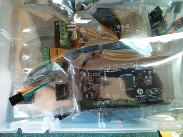 Kit rampas 1.4 - consiste en un Arduino Mega, un escudo de rampas 1.4 y 4 o 5 "conductores" "drivers" controlan los motores de la NEMA 17 como sus requisitos actuales son mayores que lo que podía manejar un Arduino. Nuestro originario de SainSmart, pero encuentra un más barato alternativa en AliExpress naturalmente usted puede encontrarlos en eBay también.