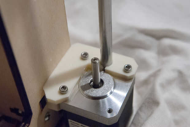 Cortar tiras de 2 x 320mm de varilla lisa M8 para el eje z y que encajen en los montes de la parte inferior. Debe quedar al ras contra los motores del eje z.