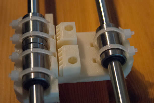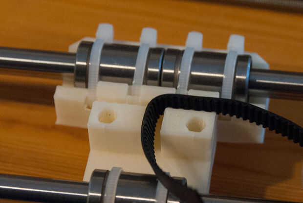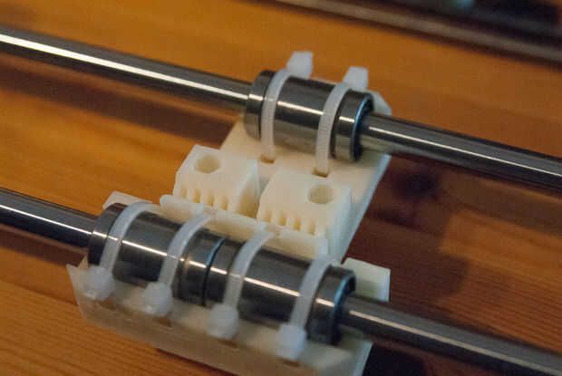 Fije el carro X a los 3 rodamientos de LM8UU con ataduras de cremallera.