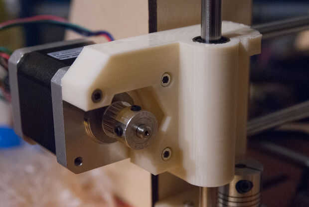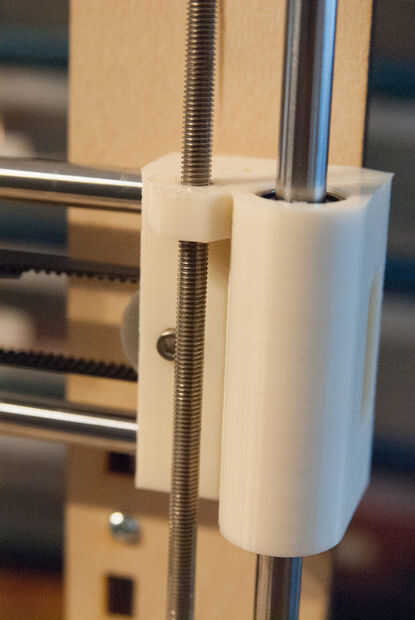 El eje z mueve el estirador/caliente extremo hacia arriba y hacia abajo. Tiene 2 motores, el vástago roscado M5, M8 liso barra superior y fondo impreso monturas de plástico y acopladores para la fijación de la varilla roscada M5 a los ejes del motor.