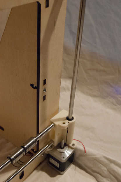 Acople 2 x motores NEMA-17 a los soportes de eje con tornillos de 10mm M3. Montaje temporal un eje superior montar y medir la distancia entre la parte inferior hasta la parte superior. Tenemos 320mm - se trata de la longitud de su eje z barra lisa así que mida dos veces y corte una vez. Podría hacer más si quieres.