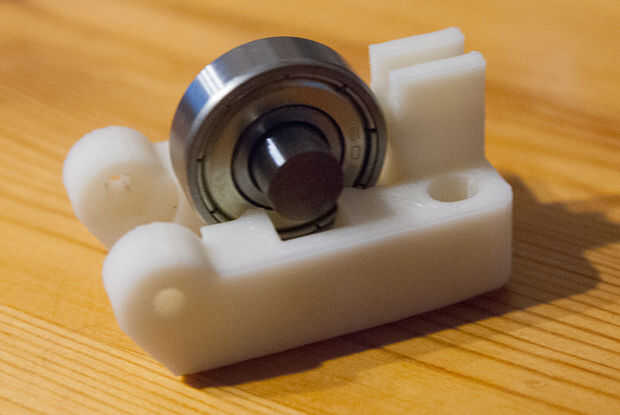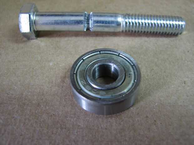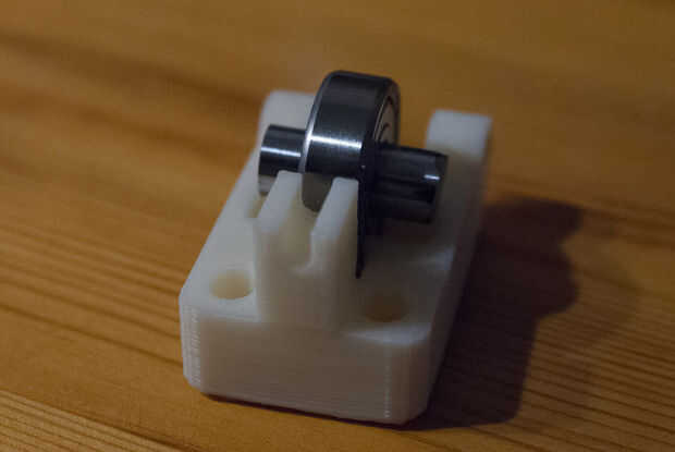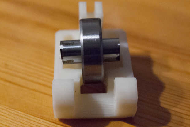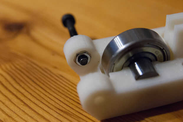 Deslice uno de los 608 teniendo una longitud de 20mm de varilla lisa M8 y pulse en la rueda loca. Debe encajar en su lugar con un poco de fuerza.