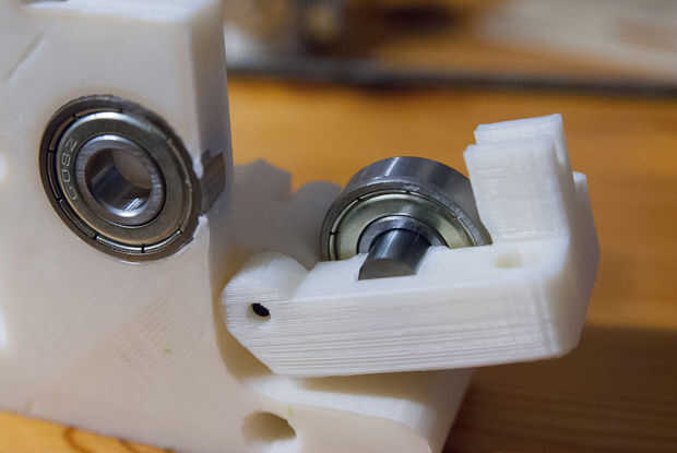 Comenzar limpiando los agujeros donde montar el motor y asegúrese de que el 608 cojinete encaja en la pieza principal de la extrusora.