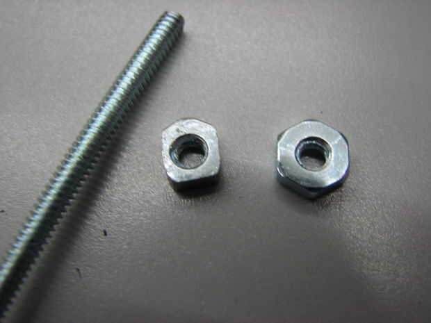 Consta de un perno de "hobbed", 3 x 608zz cojinetes, pequeño engranaje para el motor y un engranaje grande que el tornillo de hobbed cabe en M8 tuercas y arandelas, un perno 25mm M3 y tuerca de la rueda loca, un perno de 10mm M3 y tuerca para el pequeño engranaje, una longitud de 20mm de varilla lisa de M8, 3 x 10mm M3 tornillos para sujetar el motor. Para la tensión intermedia también tendrá 2 x 6-32 x 2 "(o más) pernos y tuercas para que coincida con. También 2 x resortes de tensión - utilizamos resortes desechados que se encuentran en una línea de freno del coche.