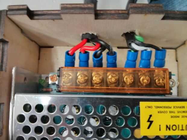 Al lado de la CA de entrada es 2 x 12V DC salidas que van a la Junta de rampas.