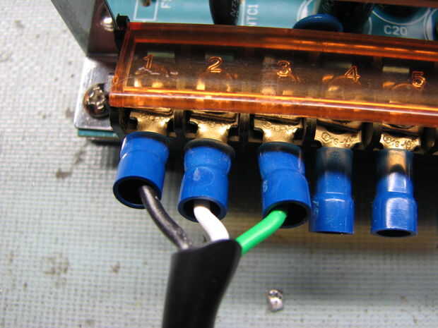 Empezamos cortando el extremo de un cable de computadora, luego habían prensado terminales de horquilla 3 cables. Uso con pequeños ganchos en el extremo - esta voluntad de ayudar a detener la terminal resbalen el borne de tornillo (véase el cuadro). Hay una conexión de vivo, neutro y tierra - asegurarse de que van a los terminales correctos.