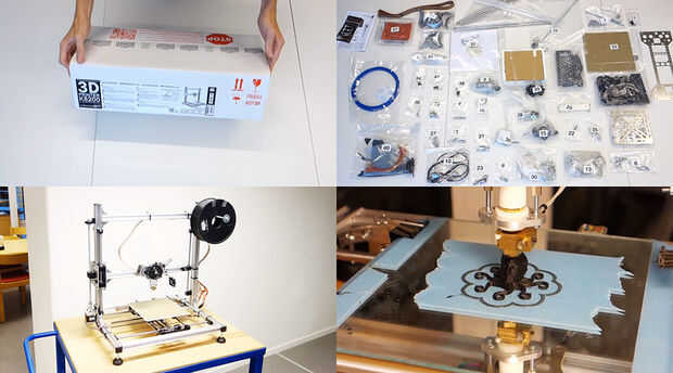 Recientemente adquirimos un 3d kit de impresora, la Velleman K8200, una impresora 3d bastante bajo costo con un alto factor de bricolaje, en que tienes que montar la impresora usted mismo, completo con cableado y soldaduras.