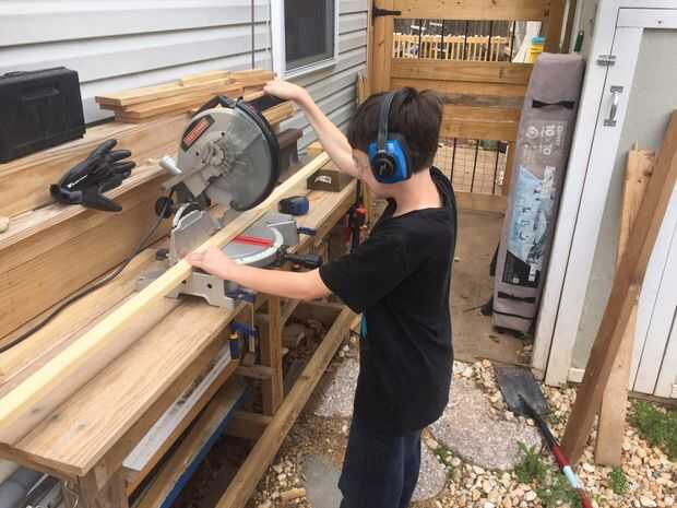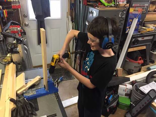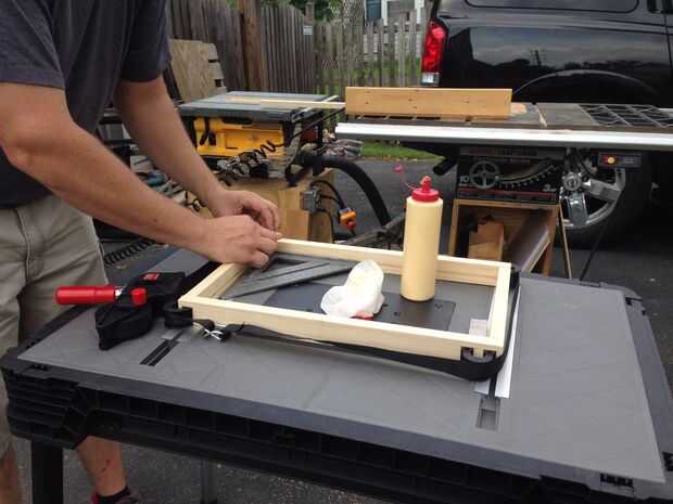 Usando un inglete sierra o sierra de mano simple, corta el pino 1 x 3 y 1 x 4 a dimensión. Su realmente hasta lo del tamaño y forma crear, sólo tener en cuenta las dimensiones estándar de la madera para que no tenga problema. Cada articulación es pegado, afianzado con abrazadera y luego atornillar en su lugar. Los agujeros de bolsada son juntas de fáciles y rápidas y un conjunto muy fácil para enseñar a los niños. Mi hijo le gustaba esos agujeros y no importa verlo trabajar. Cada conjunto utiliza 1" pocket hole tornillos. Nosotros primero las esquinas en forma de "L" y luego cortar y se unió a los lados largos y lados cortos hasta que tuvimos un marco básico. Después de eso empezamos añadiendo soporte donde lo necesitamos.