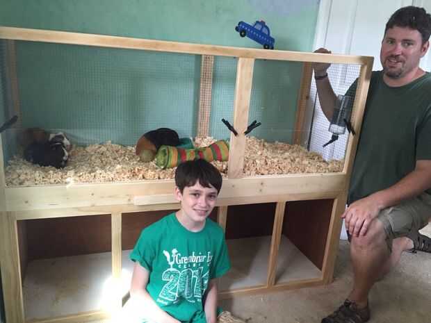 Los chicos y las guineas se parecen mucho más felices ahora. Tienen una buena vista de cada uno y es fácil de llegar en e interactuar con ellos. El único pesar que tengo para este proyecto está trabajando tan rápido, no tomar suficientes fotos. Fue un gran proyecto para hacer con niños. Esta jaula se puede fácilmente escalar hacia arriba o hacia abajo para adaptarse a sus necesidades. Planeamos construir un nivel de estrecha plataforma de las guineas a través de la espalda. (Es por ello que sus 24" alto.)