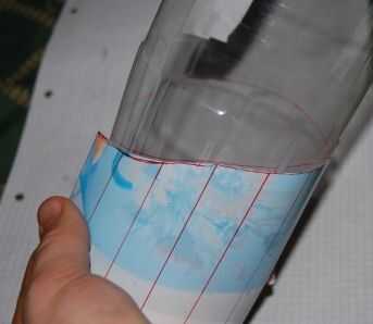 Convolve el patrón alrededor de la botella, el patrón es la mitad de la circunferencia de la botella