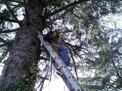 De la cuerda lo suficiente para estirar la longitud entre los dos árboles elegido