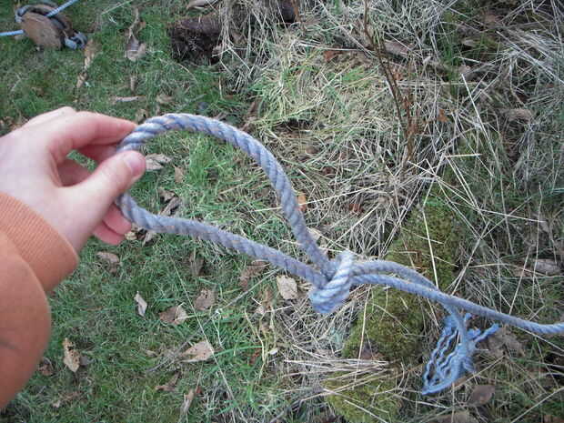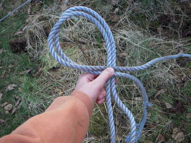 Asegúrese de que la cuerda tiene un lazo en ella. Si no, sólo coge la cuerda por lo que es una forma de bucle. ahora Envuelva el lazo detrás de la cuerda y tire de ella a través del círculo que lo hace. Es fácil de explicar en imágenes, así que mira las fotos abajo para una mejor explicación.