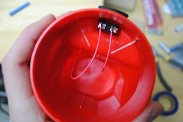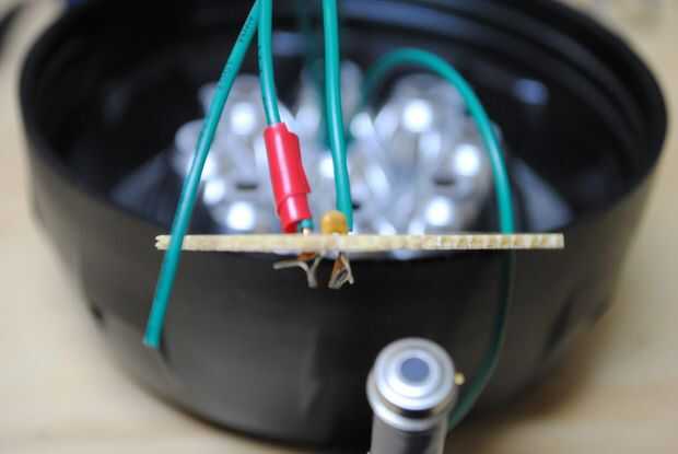 . La energía fue a los comunes ánodos de los LEDs. Suelde el interruptor de la linterna entre los 9V y Arduino.