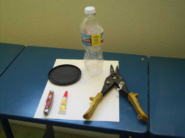 Oscuro, opaco pieza de plástico, lo suficientemente grande para el ot superior de la botella. (parte superior de un cacahuete puede) Cartón, como de una caja de galletas, también funcionará.