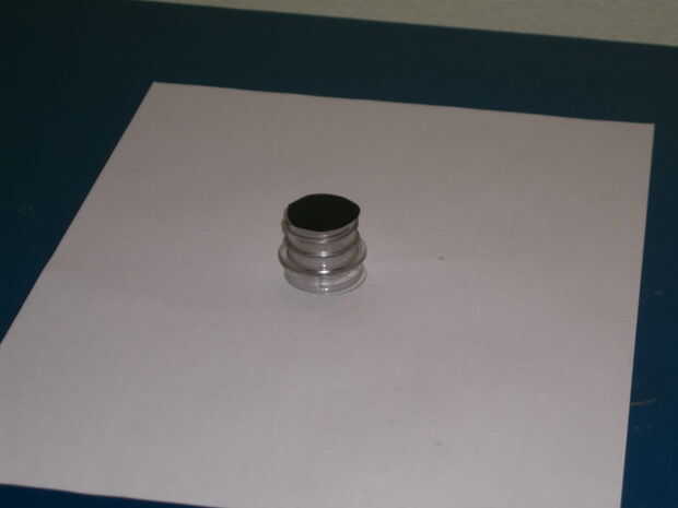Una vez que el pegamento esté seco, meter el alfiler en el centro del material opaco. Comience con poco, es mucho más fácil hacer el agujero más grande de lo que es intentar hacer más pequeño.