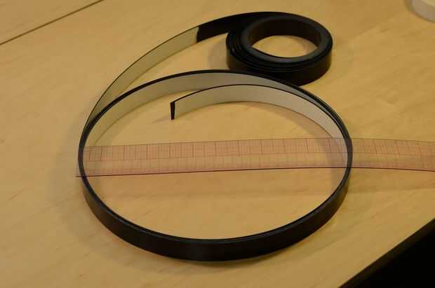 Quiere terminar con alrededor de 200 pulgadas de tira de laminado, y no hay buena manera de medir esa longitud cuando se está enrollado hacia arriba. Lo que hice es medir el diámetro de la bobina laminada que se forma y luego multiplica por pi averiguar cuantas bobinas necesito crear a acabar con al menos 200 pulgadas.
