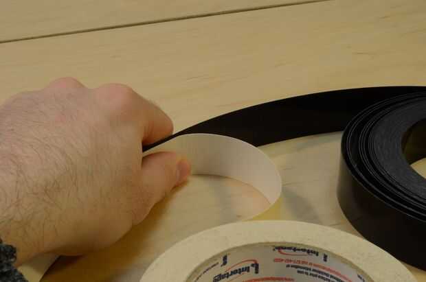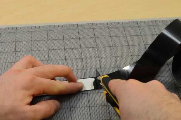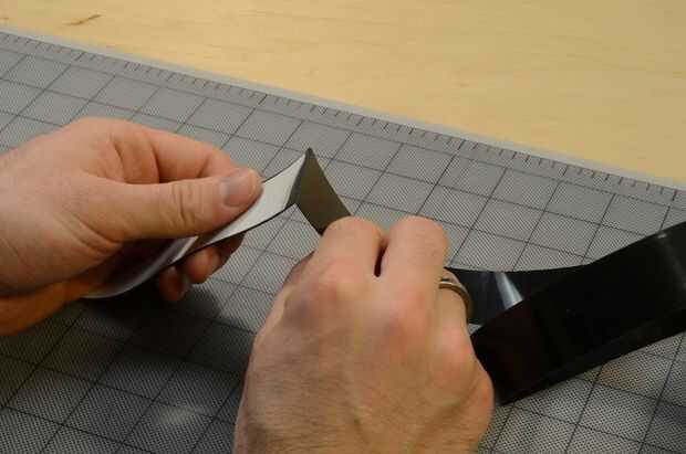 El primer paso es a una longitud de delrin pelando con cinta adhesiva de doble palo en laminado. Este es un procedimiento de "rodar", literalmente.