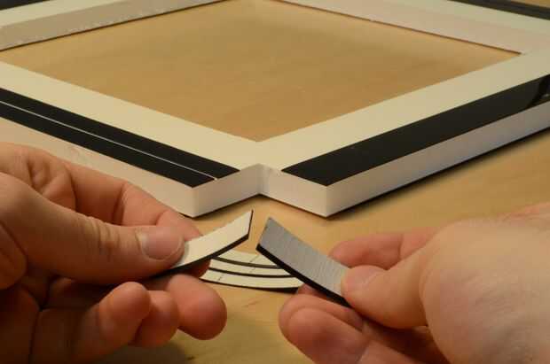 Para laminar una tira completa, retire el papel y coloque hacia abajo según la guía de colocación. Utilice sus dedos para Alinee la esquina de la tira con su respectiva esquina de la placa superior y presione hacia abajo. Mantenga un dedo prensado contra el borde de la placa superior y el borde de la tira para mantenerlos alineados como usted aprieta progresivamente a lo largo de la tira. Una vez que la tira ha sido completamente aplicada, frotar bastante duro a lo largo de la tira para fijar el adhesivo de la cinta de pegar (es activado por presión.)
