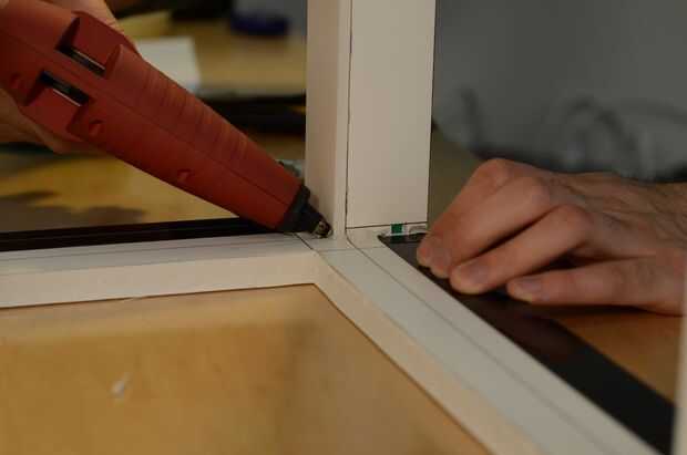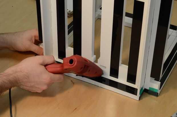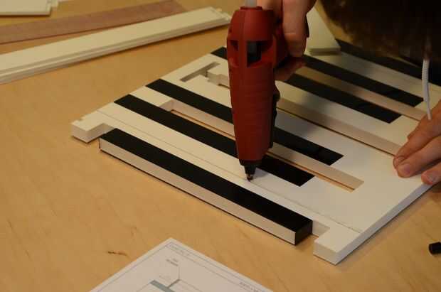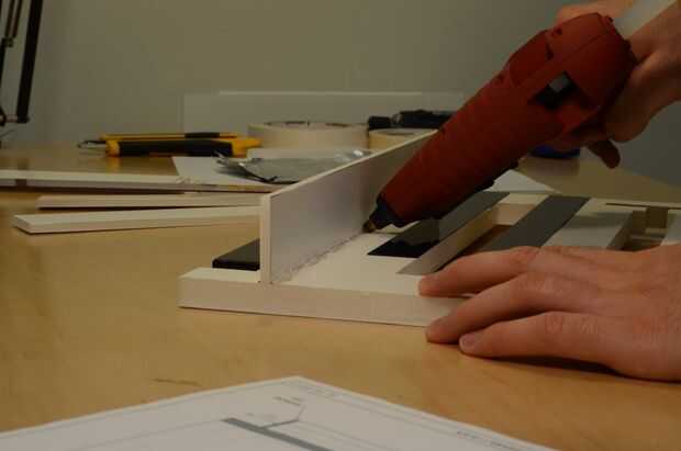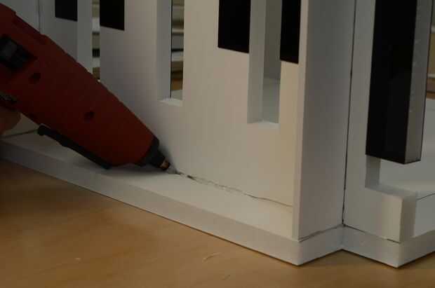 Montar cada pierna a la placa inferior ejecutando primero una gota de pegamento a lo largo de donde van a quedar en la placa inferior y luego presionando la pierna contra la placa.