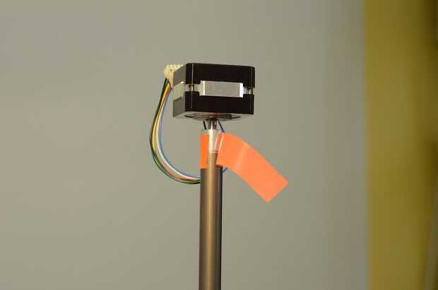 Corte 3" pedazo de cinta aislante y abrigo a medio camino alrededor del extremo del eje de aluminio. Sólo quieres unos 3/8" de la anchura de la cinta que a lo largo de la longitud del eje. Esto crea algo de un vaso, que luego puede Coloque al espaciador en. Envuelva firmemente la cinta aislante alrededor del espaciador y el eje. Aplicar otro 3" tira de cinta sobre el primero. La cinta de cables actúa como un acoplador flexible entre el motor y el eje de aluminio.