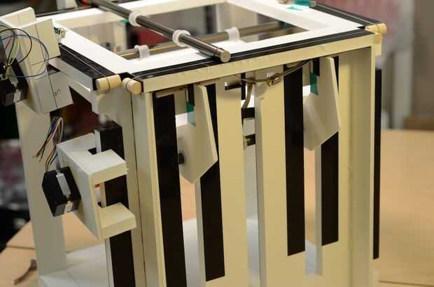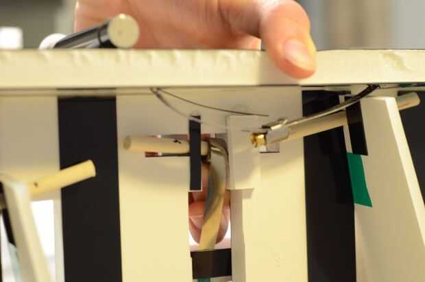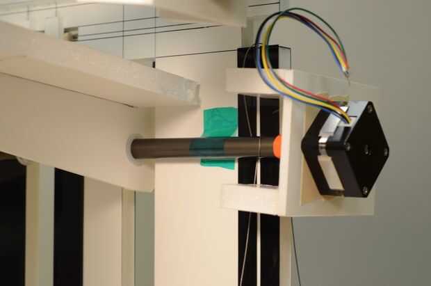 Con cinta de poliéster, corregir el eje de aluminio de la placa trasera cerca del motor. Esto lo mantendrá inmóvil mientras se coloca en los cables y la tensión les.