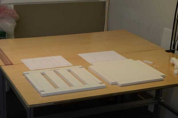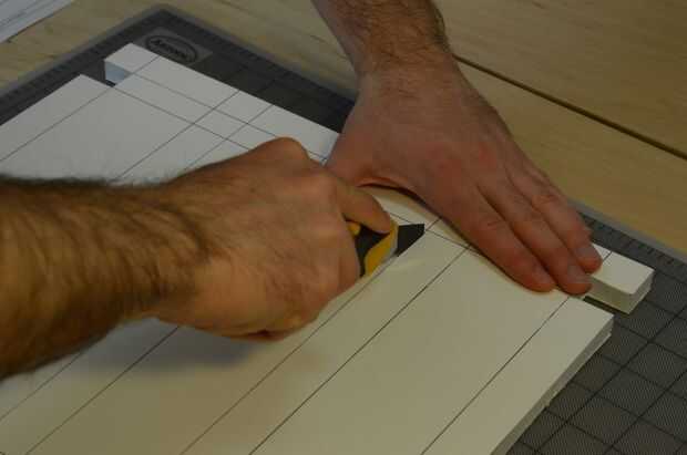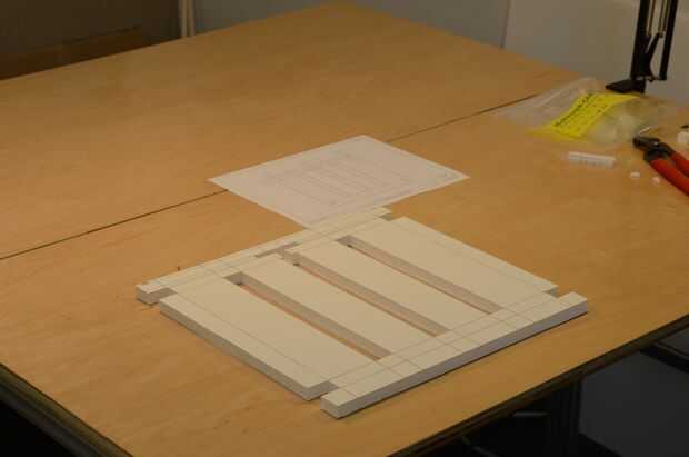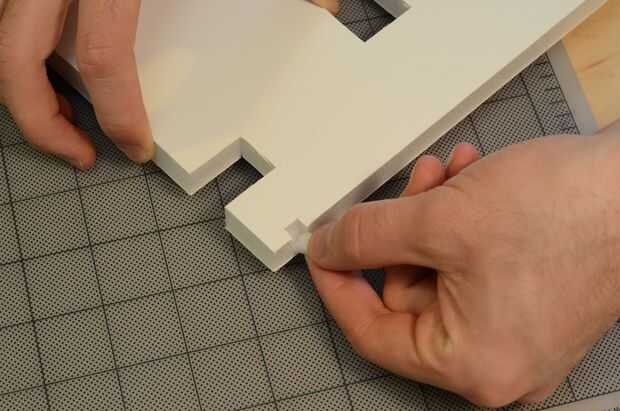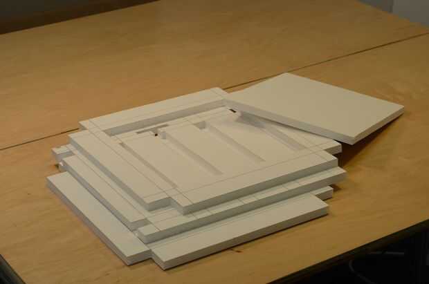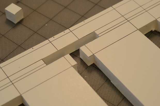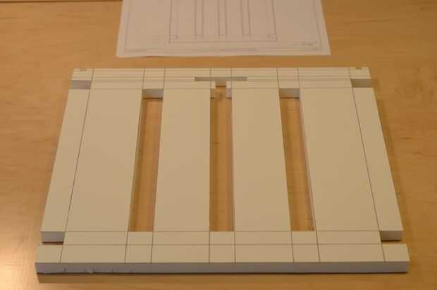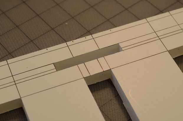 La ranura de aspecto complejo en el centro del panel se puede romper en tres rectángulos separados. Primero corte las ranuras verticales más grande, entonces la ranura horizontal más pequeño y finalmente cortar el material de conexión.