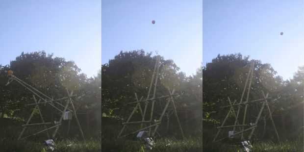 Se basa en los tabucos antiguo aunque es hecha de cañas y no tiene la eslinga. La electrónica es muy sencilla, sólo necesita un arduino y un servo para liberar el brazo.