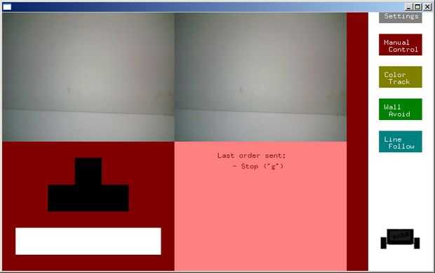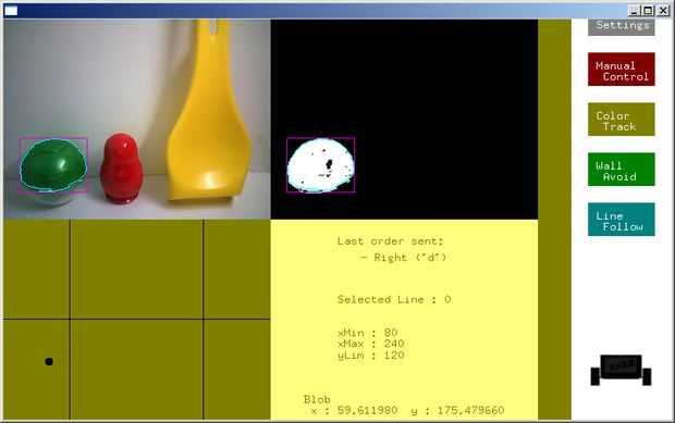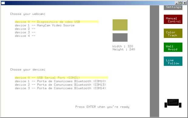 La primera pantalla que verá es la "configuración" (cuadro 2). Allí deberás elegir tu webcam y puerto serie de arduino. A continuación, tiene el "Control Manual" y usted puede elegir la pista de"Color" uno.