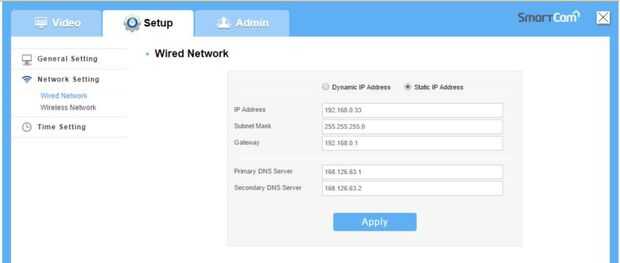 Desembale su cámara IP. En mi caso, es un Samsung SmartCam. Para que sea cómodo para las piezas, lo mejor es fijar su dirección IP.