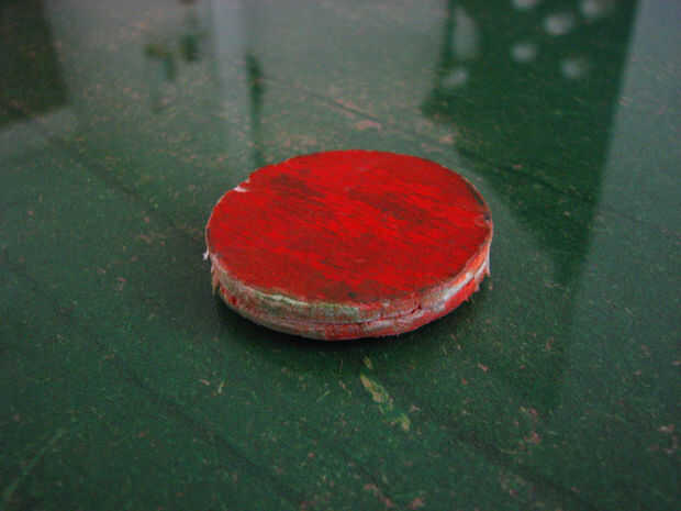 Puck: Cortar el círculo de 5cm dos (X2). Resplandor de ahora que ellos se superponen con resplandor líquido o de madera.