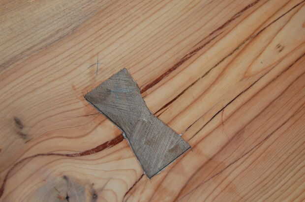 Que poner hacia fuera las ranuras a lo largo de la grieta para encontrar una buena posición para cada uno de ellos y marcado cada uno con un lápiz siguió marcando las líneas con un cuchillo. Las líneas de cuchillo dará a una agradable guía precisa para el cincel más tarde. También marqué la parte superior de la tira y sobre el contorno, así que no tuve la orientación mezclada. La mayor parte del agujero de la tira fue quitado con un router, hundiendo a un montón de agujeros uno tras otro, que le dio mi agujero una buena base plana. Después se quita el resto de la madera con un cincel utilizando la línea anotada como guía. El truco también es hacer el agujero un poco demasiado pequeño y aumentar gradualmente el tamaño constantemente comprobando el ajuste. Mi primera fue bien pero mi segunda y tercera fueron mucho mejor, tuve el placer de todas formas como era la primera vez había hecho les.