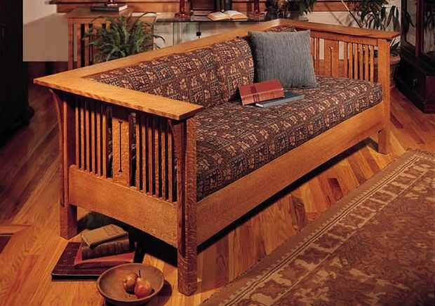 Planeado originalmente, en múltiples fragmentos y algunos de ellos para pagar materiales - buuuuut venta... Nunca consiguió alrededor a la parte vendedora - lol. Terminé edificio dos coloca (sofás), un sofá y una silla. La coloca y la silla se construyen de madera aserrada cuarto roble (QS), y el loveseat es filipino caoba y Lacewood australiano. También había planeado usando QS roble blanco (el material tradicional para estas piezas) como quería utilizar el proceso de "fuming" amoníaco para crear el color final, pero encontrar cuarto aserrada de roble blanco en cualquier calidad o cantidad apreciable se ha convertido en mucho más difícil sobre los años, así que me conformé de roble rojo de QS. Roble rojo, BTW, no se vuelve una agradable pátina como roble blanco hace cuando fumed con amoníaco - resulta un verde enfermizo. Realmente extraño.