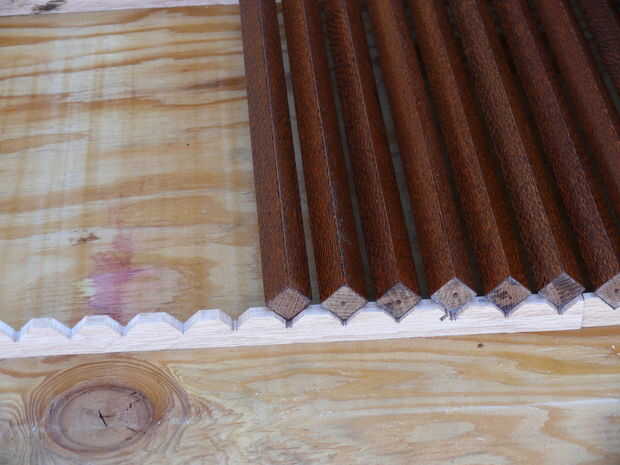 También terminado previamente el material de "relleno de bloque" para que coincida con los marcos en este punto, después de que se corte a la longitud como espaciadores entre los husos.