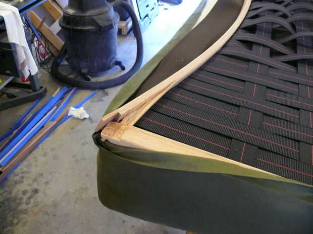 El nuevo marco que hice era considerablemente más robusto y hecho de arce duro en lugar de roble. Aún deformado en una parte bajo la fuerza del elástico, pero era substancialmente más estable.