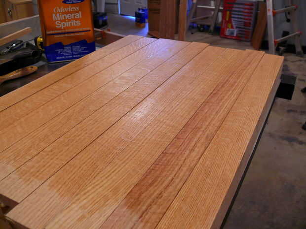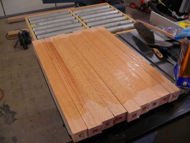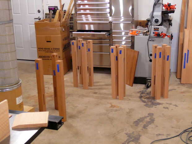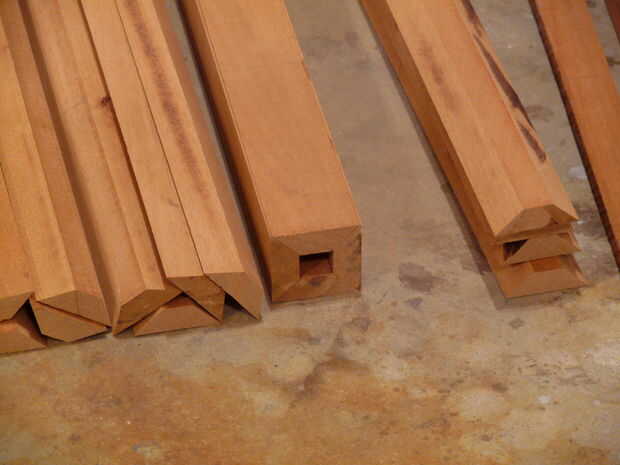Una vez que se pegan los corazones, había planeado las patas al espesor final. Tenga cuidado de cómo puedes echar la dimensión final ya que tiene que tomar la misma cantidad de cada lado de la pierna para mantener las juntas de esquina centradas. Una vez en el espesor final, los bordes biselados y luego recortar las patas a la longitud final.