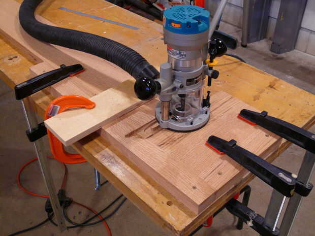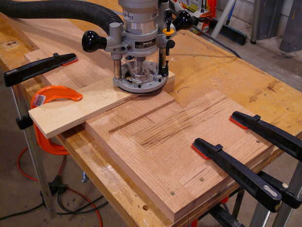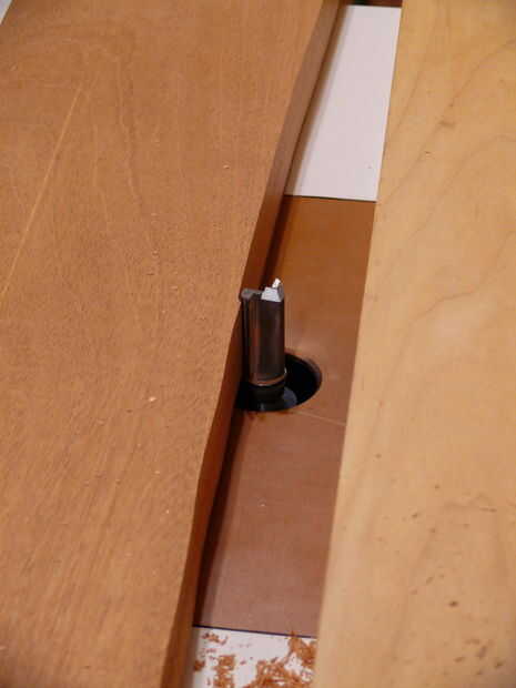Luego vino el proceso de corte de los arcos y espigas. Desde cortar las espigas de carril largo en la tabla VI estaba hacia fuera debido a su longitud y su peso (peligroso e inexacta), construí otro jig rápido con retazos que me permita cortar las espigas con un router. Una vez que la instalación fue marcada en, corte las espigas fue rápida y precisa.