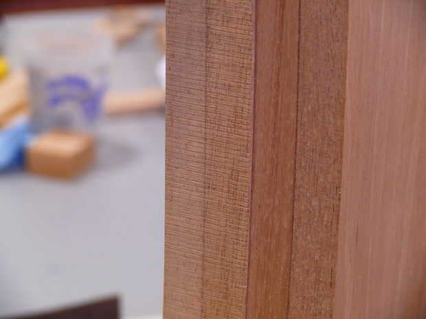 Las espigas en los rieles en realidad son inglete a 45 grados e interior de las piernas. Este inglete se realizó a continuación con una sierra de inglete. Una vez más, una cuchilla muy afilada hace una gran diferencia.