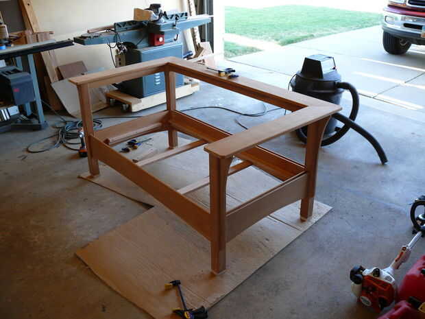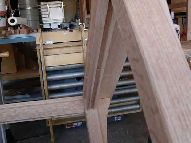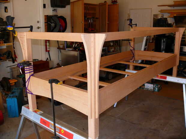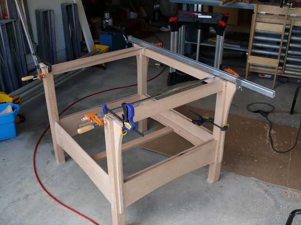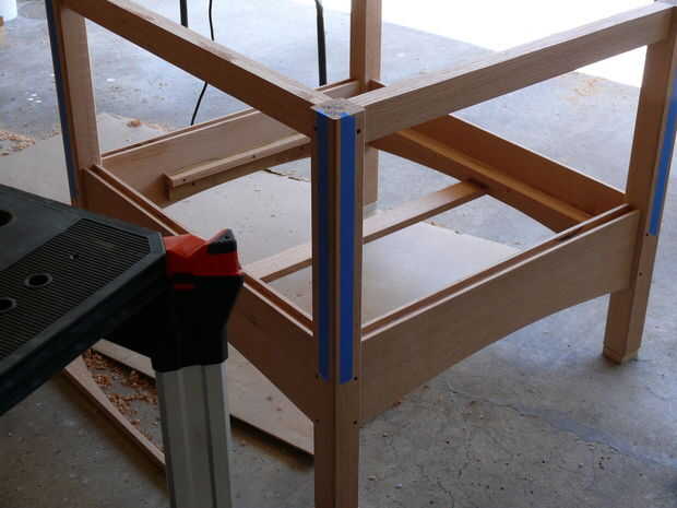 Ahora, mientras que el grano de la cara a cara-grano pegamento-vínculo entre los rieles superiores y los reposabrazos es fuerte, prefiero añadir conexión mecánica un poco así. Lo hice agujeros en hundido en las mortajas de los rieles superiores y ejecutando tornillos en los reposabrazos de debajo. Si usted decide hacer esto, ser extremadamente cuidadosos con el tamaño para que sus tornillos no perforar a través, o "telégrafo" y poner una protuberancia en la superficie del resto del brazo.